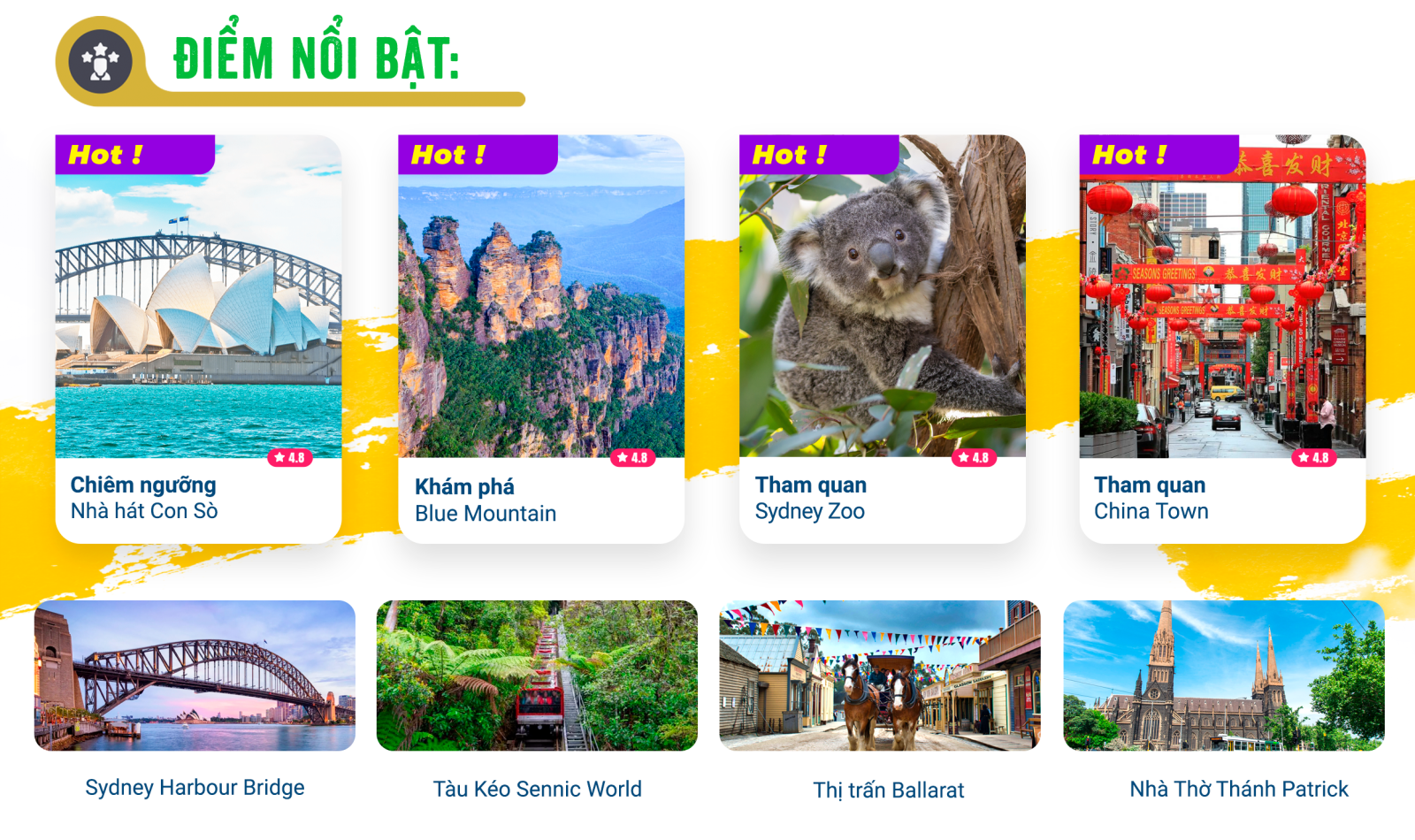 - Tối: Qúy khách dùng bữa tối tại nhà hàng địa phương, trở về khách sạn nghỉ ngơi. Nghỉ đêm tại Sydney.