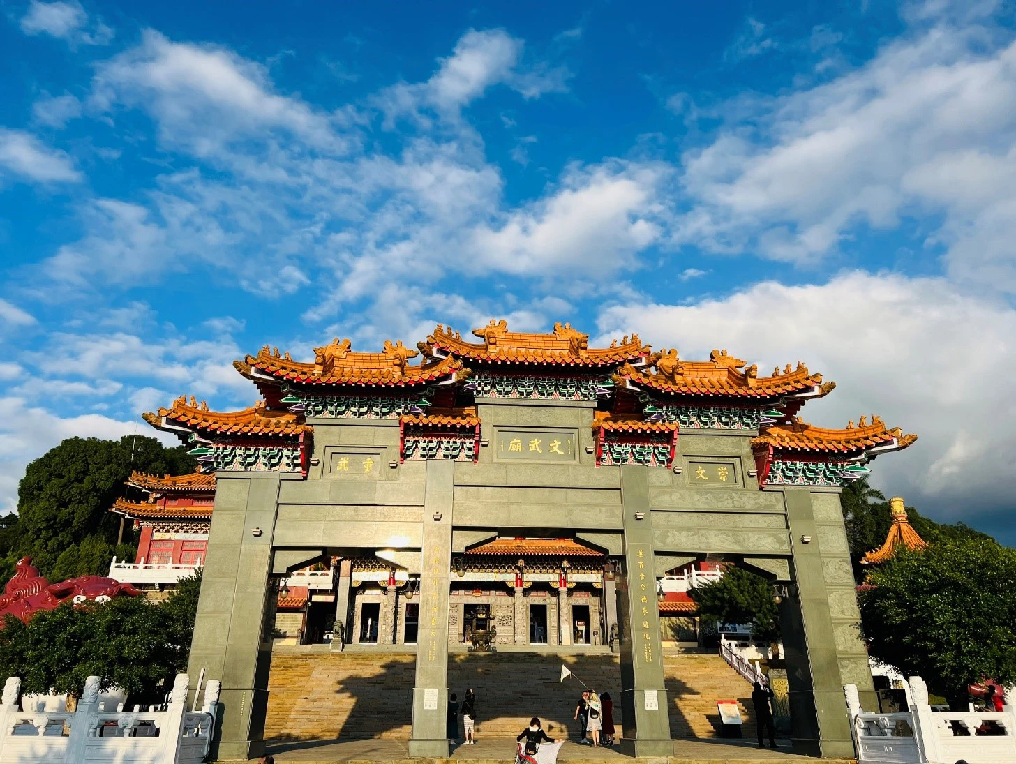 - “Văn Võ Miếu” - Wen Wu Temple - nằm ở phía Bắc hồ Nhật Nguyệt có tượng sư tử đỏ to lớn uy nghi trấn cửa, bên trong Văn Miếu thờ Khổng Tử và hai đồ đệ của ông, là Mạnh Tử và Zihsih, còn Võ Miếu thờ Quan Công và Nhạc Phi - một danh tướng yêu nước thời Tống.