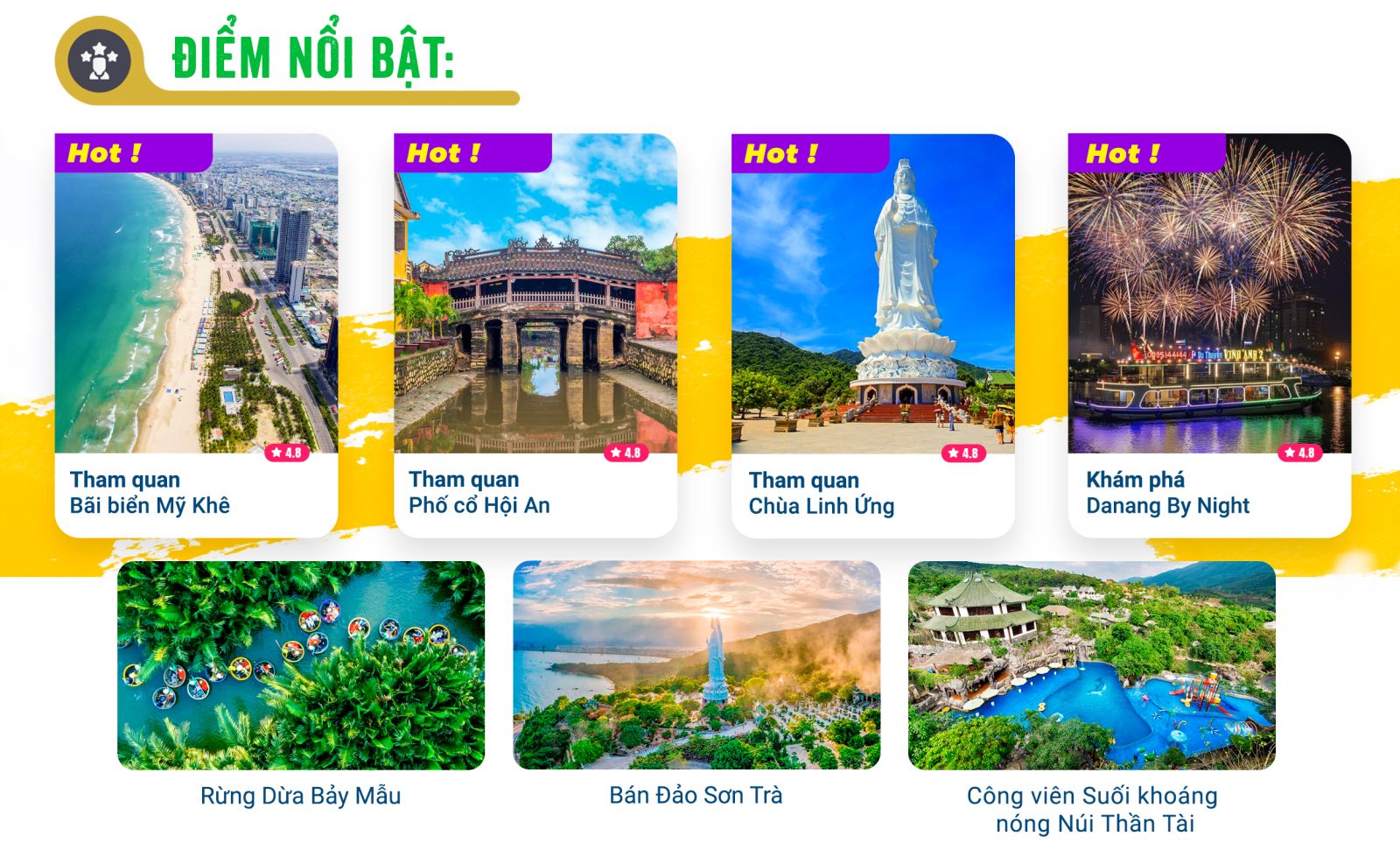 - Chiều: Hướng dẫn viên tiễn khách ra sân bay Đà Nẵng đáp chuyến bay về lại TP. Hồ Chí Minh. Kết thúc chương trình, chia tay và hẹn gặp lại Quý Khách trong các chuyến tour trong và ngoài nước.