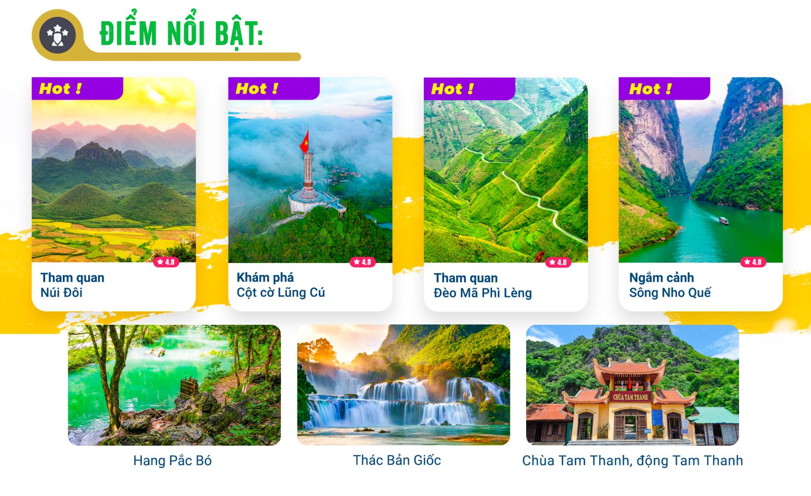- Đoàn khởi hành đi thăm cột cờ Lũng Cú, điểm cực bắc và là nóc nhà của Việt Nam – Nơi mà cúi mặt sát đất, ngẩng mặt đụng trời. Đoàn về đến Đồng Văn ăn tối, nhận phòng nghỉ ngơi.